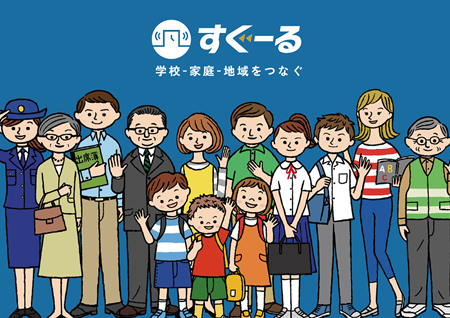 アプリ「すぐーる」地域の大人と子どもたちが並ぶ集合イラスト / バイザー様