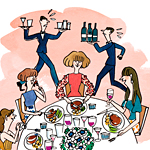 自宅や、レストラン、友人宅での食事シーン。ホームパーティー、ガーデンパーティーのシーンなど。